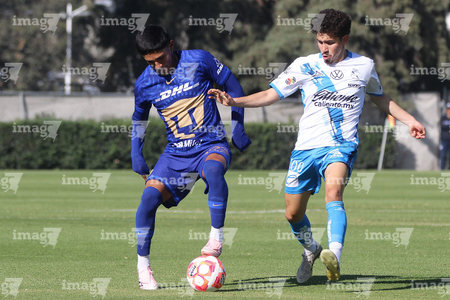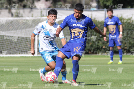 Puebla, Puebla, 13 de febrero de 2026. Jassiel Medrano (D), durante el partido correspondiente a la jornada 6 del torneo Clausura 2026 de la Liga BBVA MX categoría Sub21, entre el Club Puebla y los Pumas de la UNAM, realizado en el Estadio Club Alpha 3. Foto: Imago7/ Mireya Novo