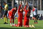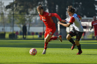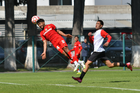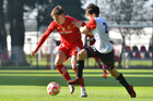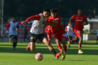 Toluca, Estado de México, 13 de febrero de 2026. David Shrem recibe gol , durante el partido correspondiente a la jornada 6 del torneo Clausura 2026 de la Liga BBVA MX categoría Sub21, entre los Diablos Rojos del Toluca y los Xolos de Tijuana, celebrado en las Instalaciones de Metepec. Foto: Imago7/ Arturo Hernández
