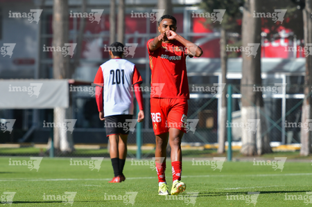 Toluca, Estado de México, 13 de febrero de 2026. William Barboza en festejo de gol , durante el partido correspondiente a la jornada 6 del torneo Clausura 2026 de la Liga BBVA MX categoría Sub21, entre los Diablos Rojos del Toluca y los Xolos de Tijuana, celebrado en las Instalaciones de Metepec. Foto: Imago7/ Arturo Hernández