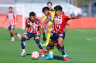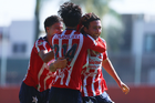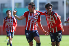 Zapopan, Jalisco, 14 de febrero 2026. Carlo Soldati anota gol, durante el partido correspondiente a la jornada 6 del torneo Clausura 2026 de la Liga BBVA MX categoría Sub21, entre las Chivas Rayadas del Guadalajara y las Águilas del América, realizado en la Cancha Gigantera 2. Foto: Imago7/ Juan Carlos Cubeyro.