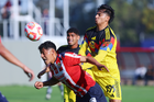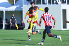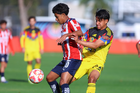 Zapopan, Jalisco, 14 de febrero 2026. Diego Arriaga y Angel Brambila, durante el partido correspondiente a la jornada 6 del torneo Clausura 2026 de la Liga BBVA MX categoría Sub21, entre las Chivas Rayadas del Guadalajara y las Águilas del América, realizado en la Cancha Gigantera 2. Foto: Imago7/ Juan Carlos Cubeyro.