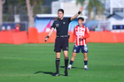 Zapopan, Jalisco, 14 de febrero 2026. Omar Ortega, árbitro central, durante el partido correspondiente a la jornada 6 del torneo Clausura 2026 de la Liga BBVA MX categoría Sub21, entre las Chivas Rayadas del Guadalajara y las Águilas del América, realizado en la Cancha Gigantera 2. Foto: Imago7/ Juan Carlos Cubeyro.