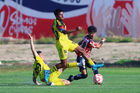 Zapopan, Jalisco, 14 de febrero 2026. Angel Brambila y Walter Portales, durante el partido correspondiente a la jornada 6 del torneo Clausura 2026 de la Liga BBVA MX categoría Sub21, entre las Chivas Rayadas del Guadalajara y las Águilas del América, realizado en la Cancha Gigantera 2. Foto: Imago7/ Juan Carlos Cubeyro.