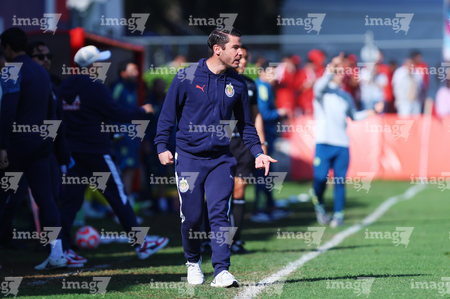 Zapopan, Jalisco, 14 de febrero 2026. Diego Pacheco, Auxiliar Técnico, durante el partido correspondiente a la jornada 6 del torneo Clausura 2026 de la Liga BBVA MX categoría Sub21, entre las Chivas Rayadas del Guadalajara y las Águilas del América, realizado en la Cancha Gigantera 2. Foto: Imago7/ Juan Carlos Cubeyro.