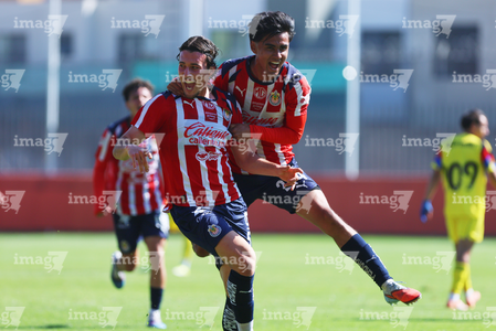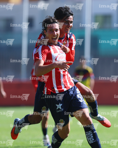 Zapopan, Jalisco, 14 de febrero 2026. Norberto Bedolla en festejo, durante el partido correspondiente a la jornada 6 del torneo Clausura 2026 de la Liga BBVA MX categoría Sub21, entre las Chivas Rayadas del Guadalajara y las Águilas del América, realizado en la Cancha Gigantera 2. Foto: Imago7/ Juan Carlos Cubeyro.