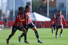 Zapopan, Jalisco, 14 de febrero 2026. Diego Latorre y Santiago Camarena, durante el partido correspondiente a la jornada 6 del torneo Clausura 2026 de la Liga BBVA MX categoría Sub21, entre las Chivas Rayadas del Guadalajara y las Águilas del América, realizado en la Cancha Gigantera 2. Foto: Imago7/ Juan Carlos Cubeyro.