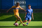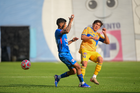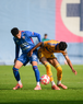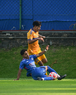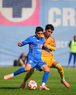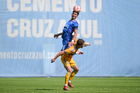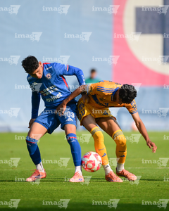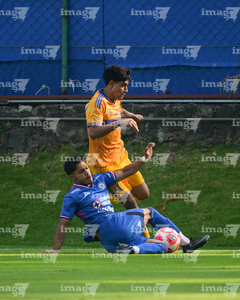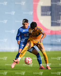Ciudad de México a 15 de febrero de 2026. Isac Galván y Josué Díaz, durante el partido correspondiente a la jornada 6 del torneo Clausura 2026 de la Liga BBVA MX categoría Sub21, entre la Máquina Celeste del Cruz Azul y los Tigres de la UANL, realizado en el La Noria. Foto: Imago7/ Alexis Chávez
