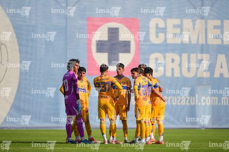 Ciudad de México a 15 de febrero de 2026. Jugadores de Tigres, durante el partido correspondiente a la jornada 6 del torneo Clausura 2026 de la Liga BBVA MX categoría Sub21, entre la Máquina Celeste del Cruz Azul y los Tigres de la UANL, realizado en el La Noria. Foto: Imago7/ Alexis Chávez