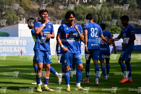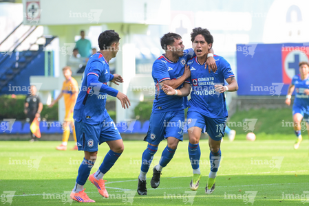 Ciudad de México a 15 de febrero de 2026. Jugadores de Cruz Azul, durante el partido correspondiente a la jornada 6 del torneo Clausura 2026 de la Liga BBVA MX categoría Sub21, entre la Máquina Celeste del Cruz Azul y los Tigres de la UANL, realizado en el La Noria. Foto: Imago7/ Alexis Chávez