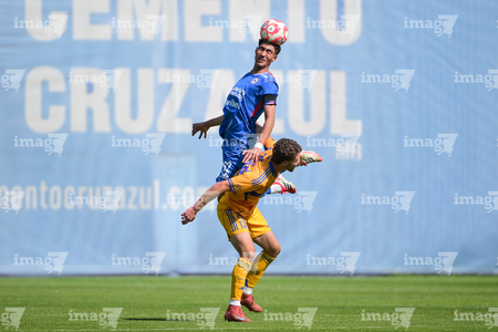 Ciudad de México a 15 de febrero de 2026. Antonio De María Y Campos y Josué Díaz, durante el partido correspondiente a la jornada 6 del torneo Clausura 2026 de la Liga BBVA MX categoría Sub21, entre la Máquina Celeste del Cruz Azul y los Tigres de la UANL, realizado en el La Noria. Foto: Imago7/ Alexis Chávez