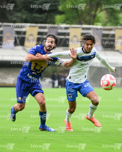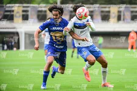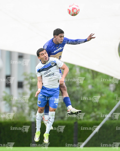 Ciudad de México, 22 de febrero 2026. Diego Contreras y Diego García, durante el partido correspondiente a la jornada 7 del torneo Clausura 2025 de la Liga BBVA MX categoría Sub21, entre los Pumas de la UNAM y los Rayados del Monterrey, realizado en Cantera. Foto: Imago7/ Alexis Chavez
