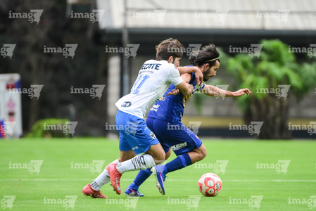 Ciudad de México, 22 de febrero 2026. Pablo Bennevendo y Marcelo Olvera, durante el partido correspondiente a la jornada 7 del torneo Clausura 2025 de la Liga BBVA MX categoría Sub21, entre los Pumas de la UNAM y los Rayados del Monterrey, realizado en Cantera. Foto: Imago7/ Alexis Chavez