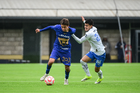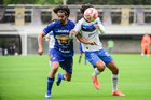 Ciudad de México, 22 de febrero 2026. Luis Rojas y Pablo Bennevendo, durante el partido correspondiente a la jornada 7 del torneo Clausura 2025 de la Liga BBVA MX categoría Sub21, entre los Pumas de la UNAM y los Rayados del Monterrey, realizado en Cantera. Foto: Imago7/ Alexis Chavez