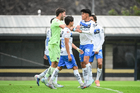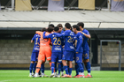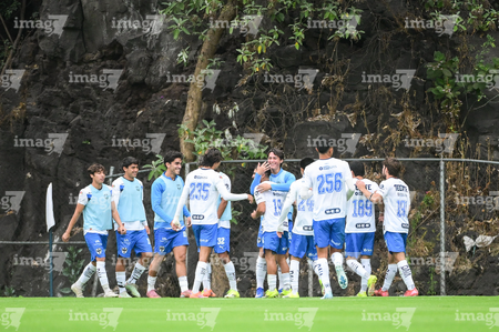 Ciudad de México, 22 de febrero 2026. Jugadores de Monterrey en festejo, durante el partido correspondiente a la jornada 7 del torneo Clausura 2025 de la Liga BBVA MX categoría Sub21, entre los Pumas de la UNAM y los Rayados del Monterrey, realizado en Cantera. Foto: Imago7/ Alexis Chavez