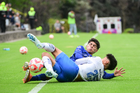 Ciudad de México, 22 de febrero 2026. Stanley García y Omar Gálvez, durante el partido correspondiente a la jornada 7 del torneo Clausura 2025 de la Liga BBVA MX categoría Sub21, entre los Pumas de la UNAM y los Rayados del Monterrey, realizado en Cantera. Foto: Imago7/ Alexis Chavez