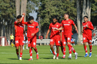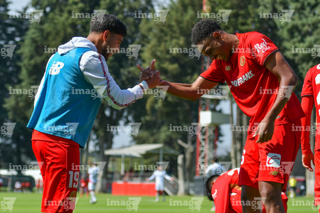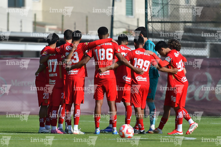 Metepec, Estado de México, 14 de Marzo de 2026. Jugadores del Atlas sub21, durante el partido correspondiente a la jornada 11 del torneo Clausura 2026 de la Liga BBVA MX categoría Sub21, entre los Diablos Rojos del Toluca y los Rojinegros del Atlas, realizado en las instalaciones de Metepec. Foto: Imago7/ Arturo Hernández