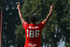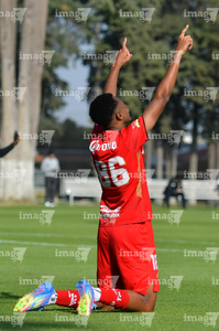 Metepec, Estado de México, 14 de Marzo de 2026. Oswaldo Virgen en festejo de gol, durante el partido correspondiente a la jornada 11 del torneo Clausura 2026 de la Liga BBVA MX categoría Sub21, entre los Diablos Rojos del Toluca y los Rojinegros del Atlas, realizado en las instalaciones de Metepec. Foto: Imago7/ Arturo Hernández