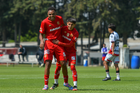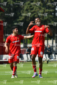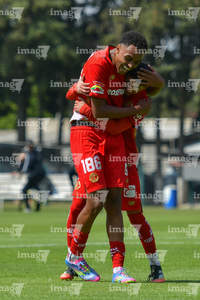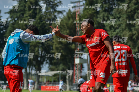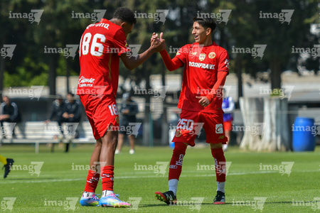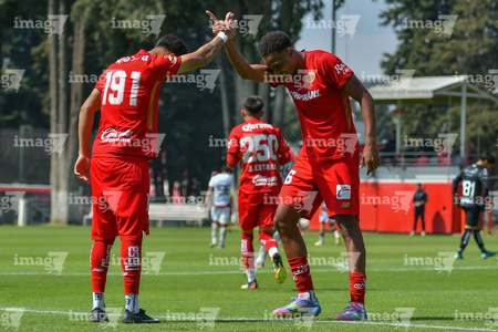 Metepec, Estado de México, 14 de Marzo de 2026. William Barboza y José Estrada en festejo de gol, durante el partido correspondiente a la jornada 11 del torneo Clausura 2026 de la Liga BBVA MX categoría Sub21, entre los Diablos Rojos del Toluca y los Rojinegros del Atlas, realizado en las instalaciones de Metepec. Foto: Imago7/ Arturo Hernández