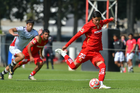 Metepec, Estado de México, 14 de Marzo de 2026. Oswaldo Virgen anota gol, durante el partido correspondiente a la jornada 11 del torneo Clausura 2026 de la Liga BBVA MX categoría Sub21, entre los Diablos Rojos del Toluca y los Rojinegros del Atlas, realizado en las instalaciones de Metepec. Foto: Imago7/ Arturo Hernández