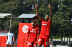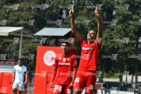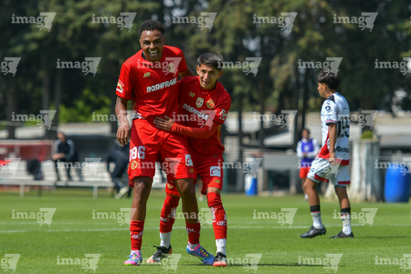 Metepec, Estado de México, 14 de Marzo de 2026. Kevin Martínez y William Barboza en festejo de gol, durante el partido correspondiente a la jornada 11 del torneo Clausura 2026 de la Liga BBVA MX categoría Sub21, entre los Diablos Rojos del Toluca y los Rojinegros del Atlas, realizado en las instalaciones de Metepec. Foto: Imago7/ Arturo Hernández