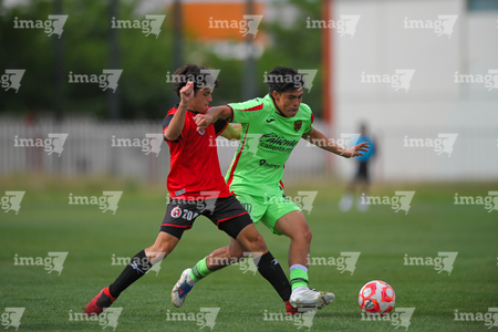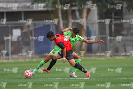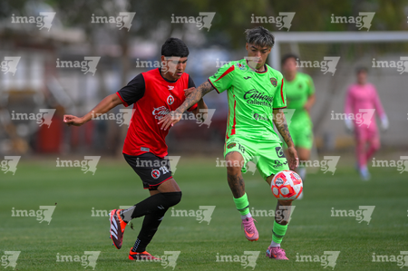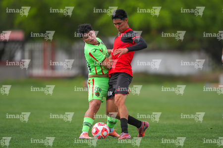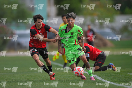Ciudad Juárez, Chihuahua, 10 de abril de 2026. Israel Larios e Ian Olvera, durante el partido correspondiente a la jornada 14 del torneo clausura 2026 de la Liga BBVA MX categoría Sub21, entre los Bravos de FC Juárez y los Xolos de Tijuana, realizado en realizado en el Instituto Tecnológico de Ciudad Juárez. Foto: Imago7/ José Zamora