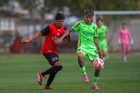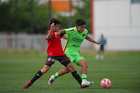 Ciudad Juárez, Chihuahua, 10 de abril de 2026. José Flores y Raymundo Fulgencio, durante el partido correspondiente a la jornada 14 del torneo clausura 2026 de la Liga BBVA MX categoría Sub21, entre los Bravos de FC Juárez y los Xolos de Tijuana, realizado en realizado en el Instituto Tecnológico de Ciudad Juárez. Foto: Imago7/ José Zamora