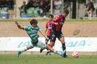 Torreón, Coahuila, 19 de abril de 2026. José Sotelo y Luis Arroyo, durante el partido correspondiente a la jornada 15 del torneo Clausura 2026 de la Liga BBVA MX categoría Sub21, entre los Guerreros de Santos Laguna y los Rojinegros del Atlas, realizado en el TSM. Foto: Imago7/