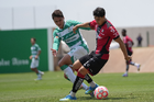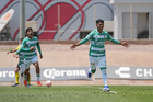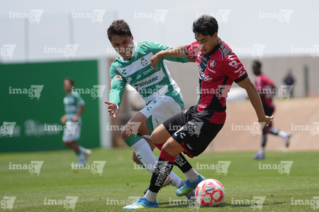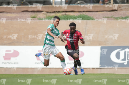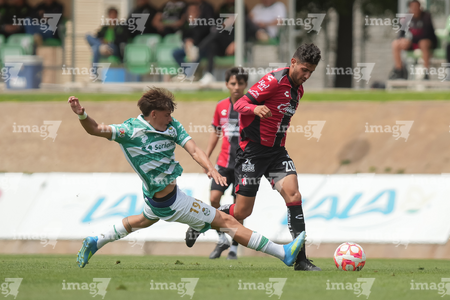 Torreón, Coahuila, 19 de abril de 2026. Luis Mascareño y José Martín, durante el partido correspondiente a la jornada 15 del torneo Clausura 2026 de la Liga BBVA MX categoría Sub21, entre los Guerreros de Santos Laguna y los Rojinegros del Atlas, realizado en el TSM. Foto: Imago7/