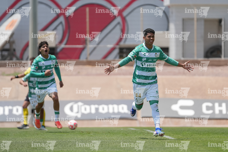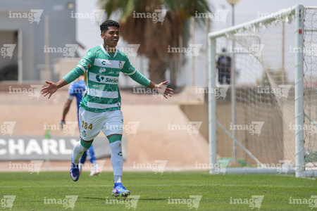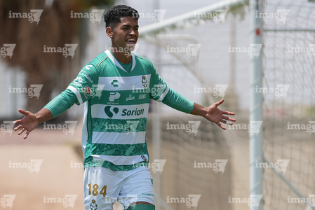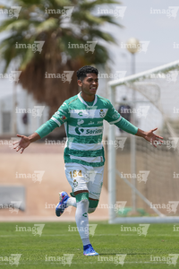 Torreón, Coahuila, 19 de abril de 2026. Luis Vega en festejo de gol, durante el partido correspondiente a la jornada 15 del torneo Clausura 2026 de la Liga BBVA MX categoría Sub21, entre los Guerreros de Santos Laguna y los Rojinegros del Atlas, realizado en el TSM. Foto: Imago7/
