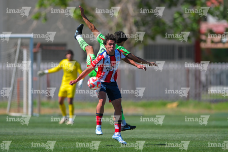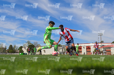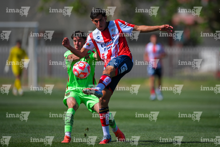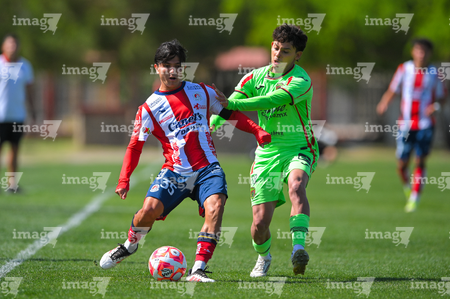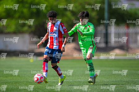 Ciudad Juárez, Chihuahua, 25 de abril de 2026. Cristian Mares y Kenneth Martínez, durante el partido correspondiente a la jornada 17 del torneo clausura 2026 de la Liga BBVA MX categoría Sub21, entre los Bravos de FC Juárez y el Atlético San Luis, realizado en realizado en el Instituto Tecnológico de Ciudad Juárez. Foto: Imago7/ José Zamora