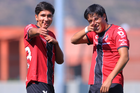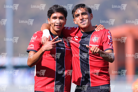 Guadalajara, Jalisco, 09 de enero de 2026. Ángel Sevilla y Roberto López Cuadra, durante el partido correspondiente a la jornada 1 del torneo Clausura 2026 de la Liga BBVA MX categoría Sub19, entre los Rojinegros del Atlas y el Club Puebla, realizado en la Academia AGA. Foto: Imago7/ Juan Carlos Cubeyro.