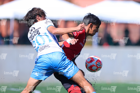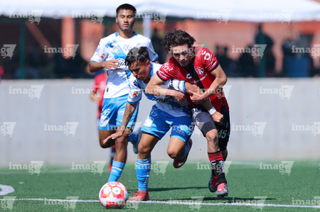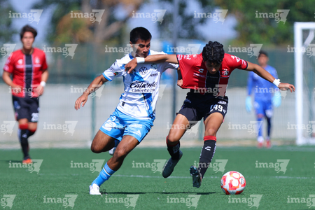 Guadalajara, Jalisco, 09 de enero de 2026. Gael De La Torre y Luis Rodríguez, durante el partido correspondiente a la jornada 1 del torneo Clausura 2026 de la Liga BBVA MX categoría Sub19, entre los Rojinegros del Atlas y el Club Puebla, realizado en la Academia AGA. Foto: Imago7/ Juan Carlos Cubeyro.