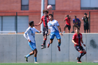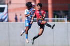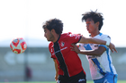 Guadalajara, Jalisco, 09 de enero de 2026. Keoki Murillo y Dominic Román, durante el partido correspondiente a la jornada 1 del torneo Clausura 2026 de la Liga BBVA MX categoría Sub19, entre los Rojinegros del Atlas y el Club Puebla, realizado en la Academia AGA. Foto: Imago7/ Juan Carlos Cubeyro.