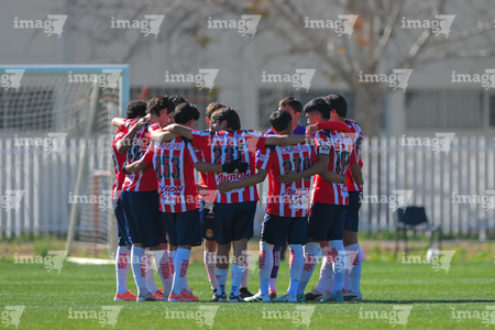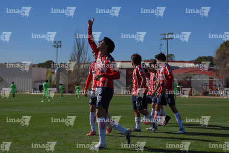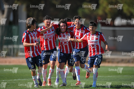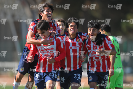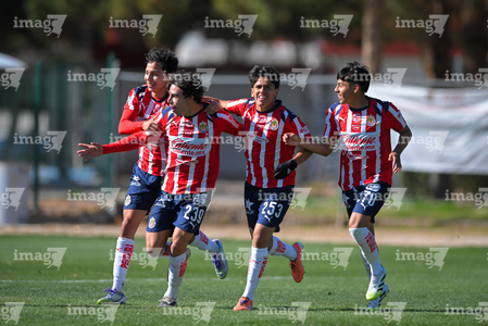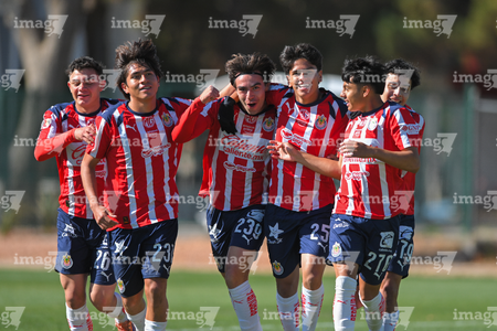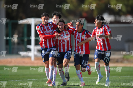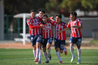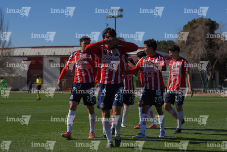 Ciudad Juárez, Chihuahua, 13 de enero de 2026. Jugadores de Chivas, durante el partido correspondiente a la jornada 2 del torneo Clausura 2026 de la Liga BBVA MX categoría Sub19, entre los Bravos de FC Juárez y las Chivas Rayadas del Guadalajara, realizado en realizado en el Instituto Tecnológico de Ciudad Juárez. Foto: Imago7/ José Zamora