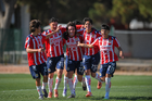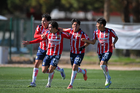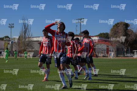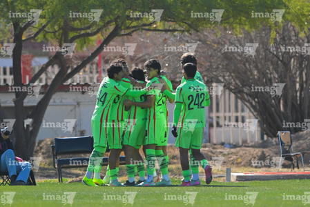 Ciudad Juárez, Chihuahua, 13 de enero de 2026. Jugadores de FC Juárez en festejo, durante el partido correspondiente a la jornada 2 del torneo Clausura 2026 de la Liga BBVA MX categoría Sub19, entre los Bravos de FC Juárez y las Chivas Rayadas del Guadalajara, realizado en realizado en el Instituto Tecnológico de Ciudad Juárez. Foto: Imago7/ José Zamora