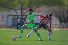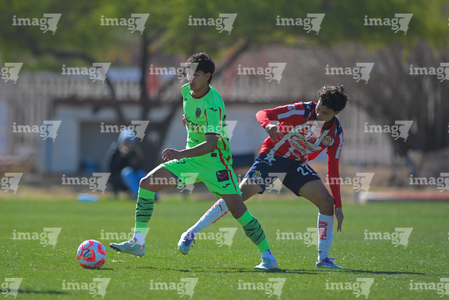 Ciudad Juárez, Chihuahua, 13 de enero de 2026. Javier Corona y Esteban Mendoza, durante el partido correspondiente a la jornada 2 del torneo Clausura 2026 de la Liga BBVA MX categoría Sub19, entre los Bravos de FC Juárez y las Chivas Rayadas del Guadalajara, realizado en realizado en el Instituto Tecnológico de Ciudad Juárez. Foto: Imago7/ José Zamora