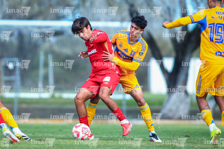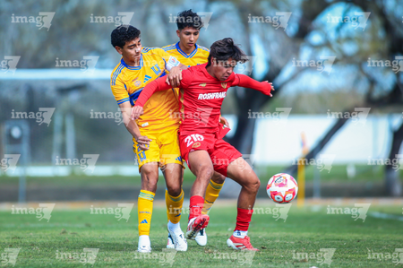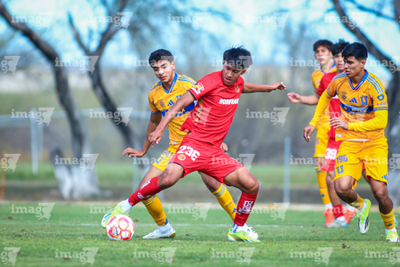 Monterrey, Nuevo León, 17 de enero 2026. , durante el partido correspondiente a la jornada 3 del torneo Clausura 2026 de la Liga BBVA MX categoría Sub19, entre los Tigres de la UANL y los Diablos Rojos del Toluca, realizado en Zuazua. Foto: Imago7/ David Arzamendi