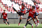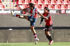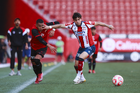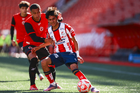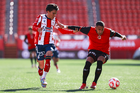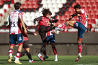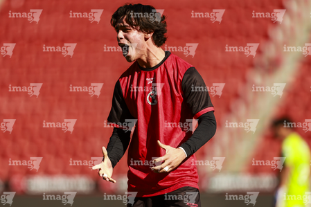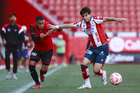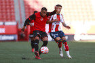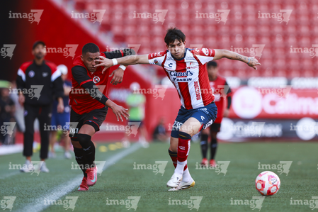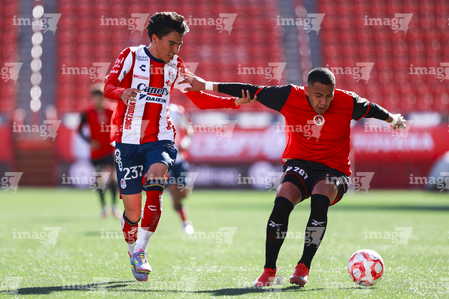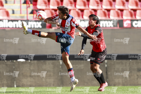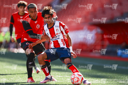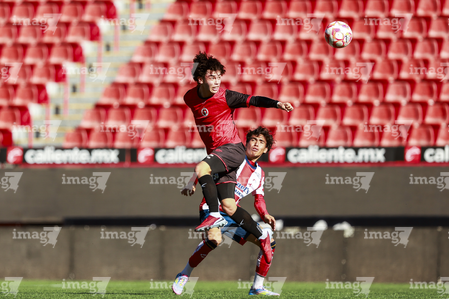 Tijuana, Baja California, 17 de enero de 2026. y Santiago Acosta, durante el partido correspondiente a la jornada 3 del torneo Clausura 2026 de la Liga BBVA MX categoría Sub19, entre los Xolos de Tijuana y el Atlético de San Luis, realizado en el estadio Caliente. Foto: Imago7/Alejandro Gutiérrez Mora