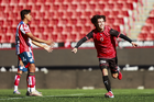 Tijuana, Baja California, 17 de enero de 2026. Edgar Sánchezanota gol, durante el partido correspondiente a la jornada 3 del torneo Clausura 2026 de la Liga BBVA MX categoría Sub19, entre los Xolos de Tijuana y el Atlético de San Luis, realizado en el estadio Caliente. Foto: Imago7/Alejandro Gutiérrez Mora