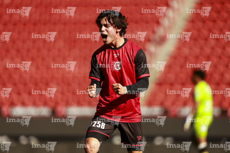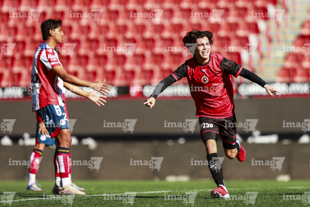 Tijuana, Baja California, 17 de enero de 2026. Edgar Sánchez en festejo de gol, durante el partido correspondiente a la jornada 3 del torneo Clausura 2026 de la Liga BBVA MX categoría Sub19, entre los Xolos de Tijuana y el Atlético de San Luis, realizado en el estadio Caliente. Foto: Imago7/Alejandro Gutiérrez Mora