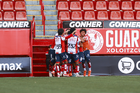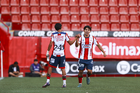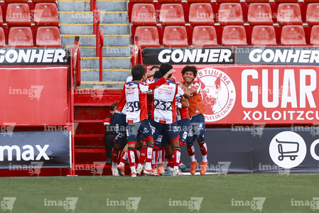 Tijuana, Baja California, 17 de enero de 2026. Jugadores del Atlético de San Luis en festejo de gol, durante el partido correspondiente a la jornada 3 del torneo Clausura 2026 de la Liga BBVA MX categoría Sub19, entre los Xolos de Tijuana y el Atlético de San Luis, realizado en el estadio Caliente. Foto: Imago7/Alejandro Gutiérrez Mora