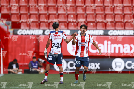 Tijuana, Baja California, 17 de enero de 2026. Juan Juárez y Martín Gamboa en festejo de gol, durante el partido correspondiente a la jornada 3 del torneo Clausura 2026 de la Liga BBVA MX categoría Sub19, entre los Xolos de Tijuana y el Atlético de San Luis, realizado en el estadio Caliente. Foto: Imago7/Alejandro Gutiérrez Mora