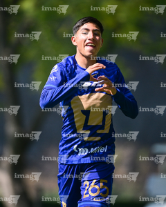 Ciudad de México a 30 de enero 2026. Jhostyn Cortes en festejo de gol, durante el partido correspondiente a la jornada 4 del torneo Clausura 2026 de la Liga BBVA MX categoría Sub19, entre los Pumas de la UNAM y los Guerreros de Santos Laguna, realizado en Cantera. Foto: Imago7/Alexis Chávez