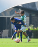 Ciudad de México a 30 de enero 2026. Cristian Martínez y Austin Vázquez, durante el partido correspondiente a la jornada 4 del torneo Clausura 2026 de la Liga BBVA MX categoría Sub19, entre los Pumas de la UNAM y los Guerreros de Santos Laguna, realizado en Cantera. Foto: Imago7/Alexis Chávez