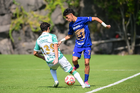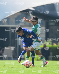 Ciudad de México a 30 de enero 2026. Whittingham Alanis y Esteban Garza, durante el partido correspondiente a la jornada 4 del torneo Clausura 2026 de la Liga BBVA MX categoría Sub19, entre los Pumas de la UNAM y los Guerreros de Santos Laguna, realizado en Cantera. Foto: Imago7/Alexis Chávez
