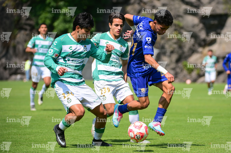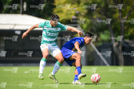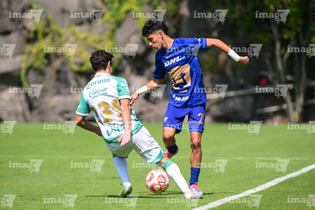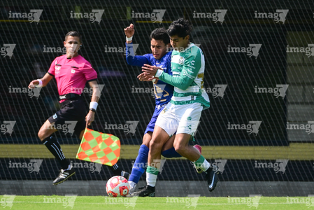 Ciudad de México a 30 de enero 2026. Jugadores de Santos, durante el partido correspondiente a la jornada 4 del torneo Clausura 2026 de la Liga BBVA MX categoría Sub19, entre los Pumas de la UNAM y los Guerreros de Santos Laguna, realizado en Cantera. Foto: Imago7/Alexis Chávez