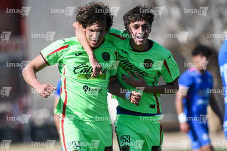 Ciudad Juárez, Chihuahua, 30 de enero de 2026. Jesús Hernández y Sebastian Padilla en festejo de gol, durante el partido correspondiente a la jornada 4 del torneo Clausura 2026 de la Liga BBVA MX categoría Sub19, entre los Bravos de FC Juárez y la Máquina Celeste del Cruz Azul, realizado en realizado en el Instituto Tecnológico de Ciudad Juárez. Foto: Imago7/ Alejandro Rodríguez