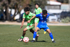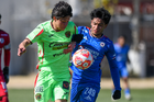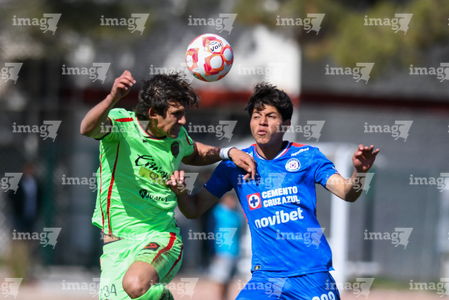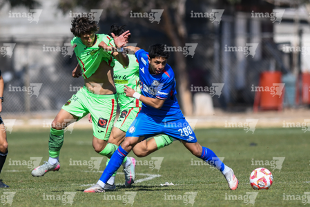 Ciudad Juárez, Chihuahua, 30 de enero de 2026. Ángel García y Jonathan Meza, durante el partido correspondiente a la jornada 4 del torneo Clausura 2026 de la Liga BBVA MX categoría Sub19, entre los Bravos de FC Juárez y la Máquina Celeste del Cruz Azul, realizado en realizado en el Instituto Tecnológico de Ciudad Juárez. Foto: Imago7/ Alejandro Rodríguez