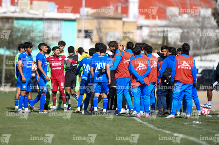 Ciudad Juárez, Chihuahua, 30 de enero de 2026. Jugadores del Cruz Azul, durante el partido correspondiente a la jornada 4 del torneo Clausura 2026 de la Liga BBVA MX categoría Sub19, entre los Bravos de FC Juárez y la Máquina Celeste del Cruz Azul, realizado en realizado en el Instituto Tecnológico de Ciudad Juárez. Foto: Imago7/ Alejandro Rodríguez