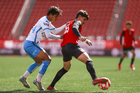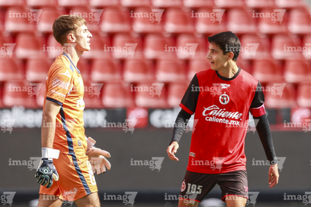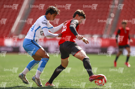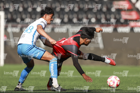 Tijuana, Baja California, 06 de febrero 2026. Christopher Rodríguez y Martín Bonilla, durante el partido correspondiente a la jornada 5 del torneo Clausura 2026 de la Liga BBVA MX categoría Sub19, entre los Xolos de Tijuana y el Club Puebla, celebrado en el estadio Caliente. Foto: Imago7/Alejandro Gutiérrez Mora